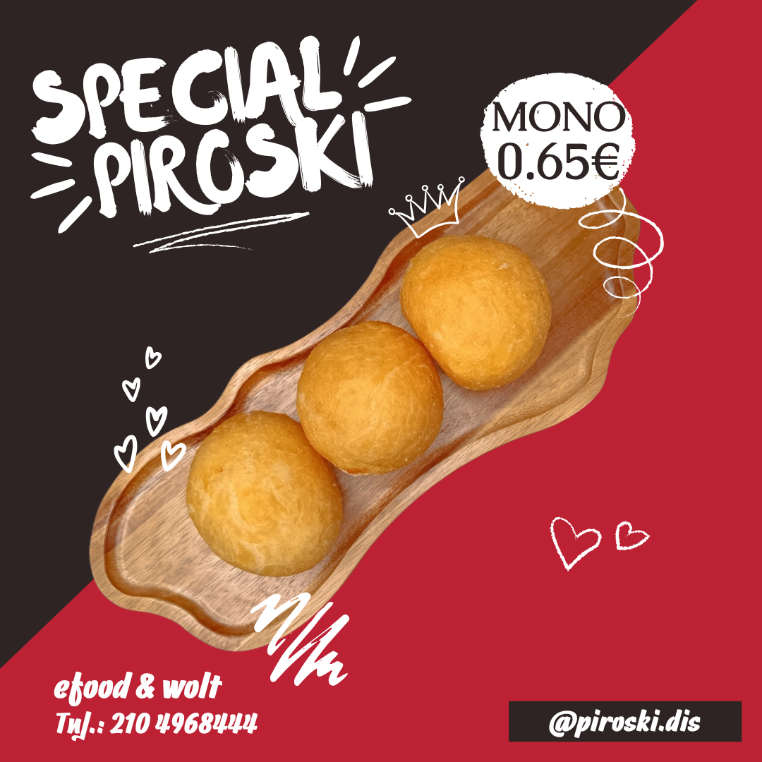 “Πολύ νόστιμα και ελαφριά. Χωρίς να σου μένει λάδια. Σίγουρα το καλύτερο πιροσκι του Κορυδαλλού. Συνιστώ ανεπιφύλακτα!!”